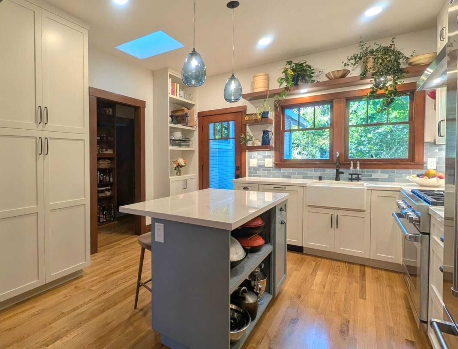 This contemporary two-toned, cottage kitchen remodel blends timeless design with modern functionality. The space was reimagined to highlight natural light and comfort while incorporating thoughtful design details that make everyday living delightful.